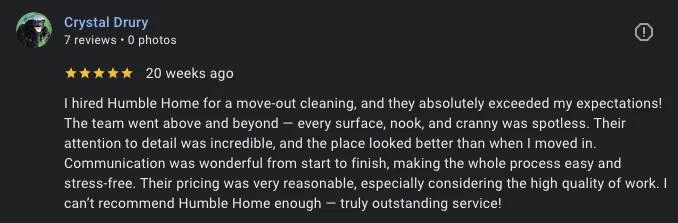 Welcome to the world of meticulous care and dedication. At Humble Home Cleaning, we don't just clean homes; we revitalize them. Every space that enters our care is treated not just as a place to live but as a sanctuary for comfort and beauty. Prepare to experience home cleaning like never before.